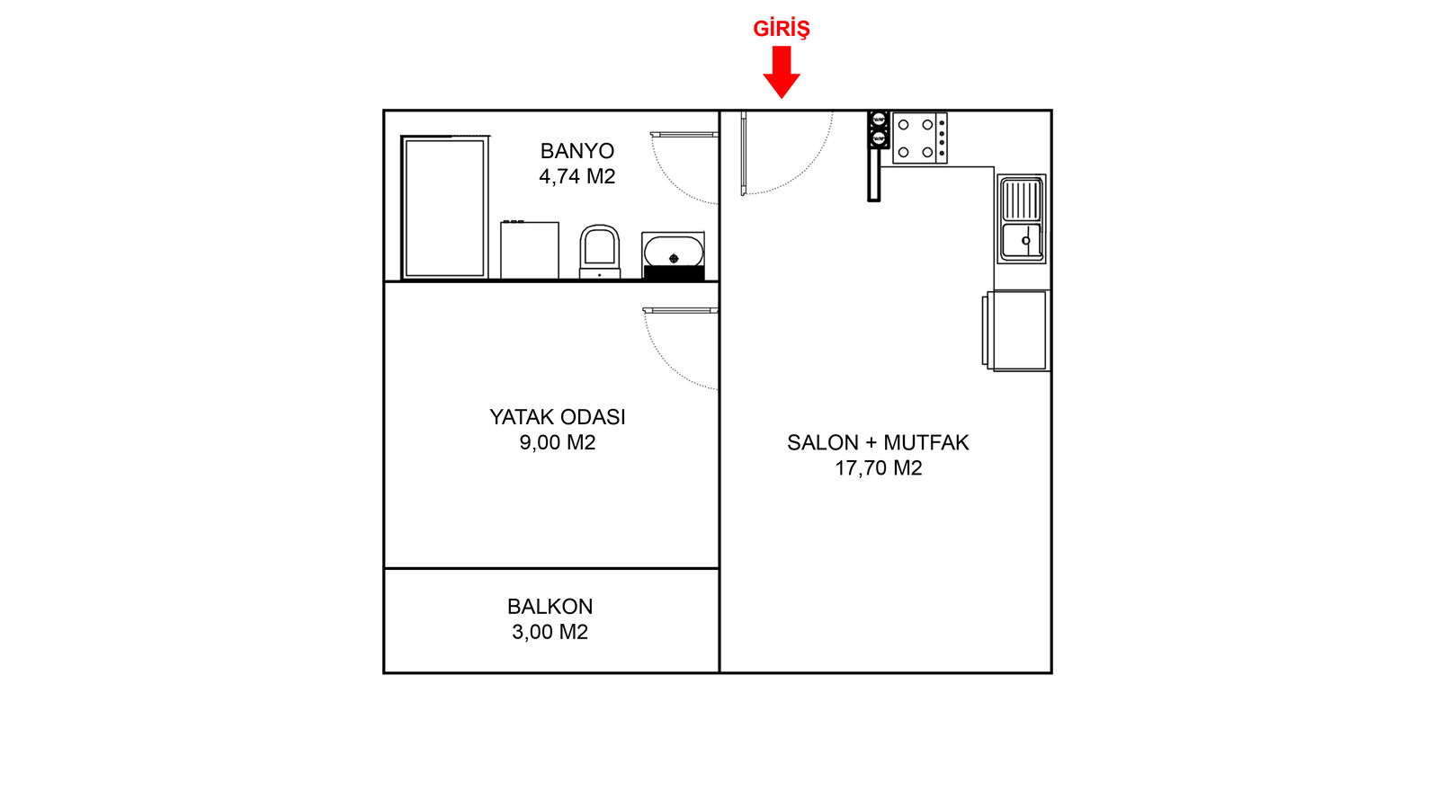 BRÜT : 40 M2 - NET : 32 M2'DEN OLUŞMAKTADIR