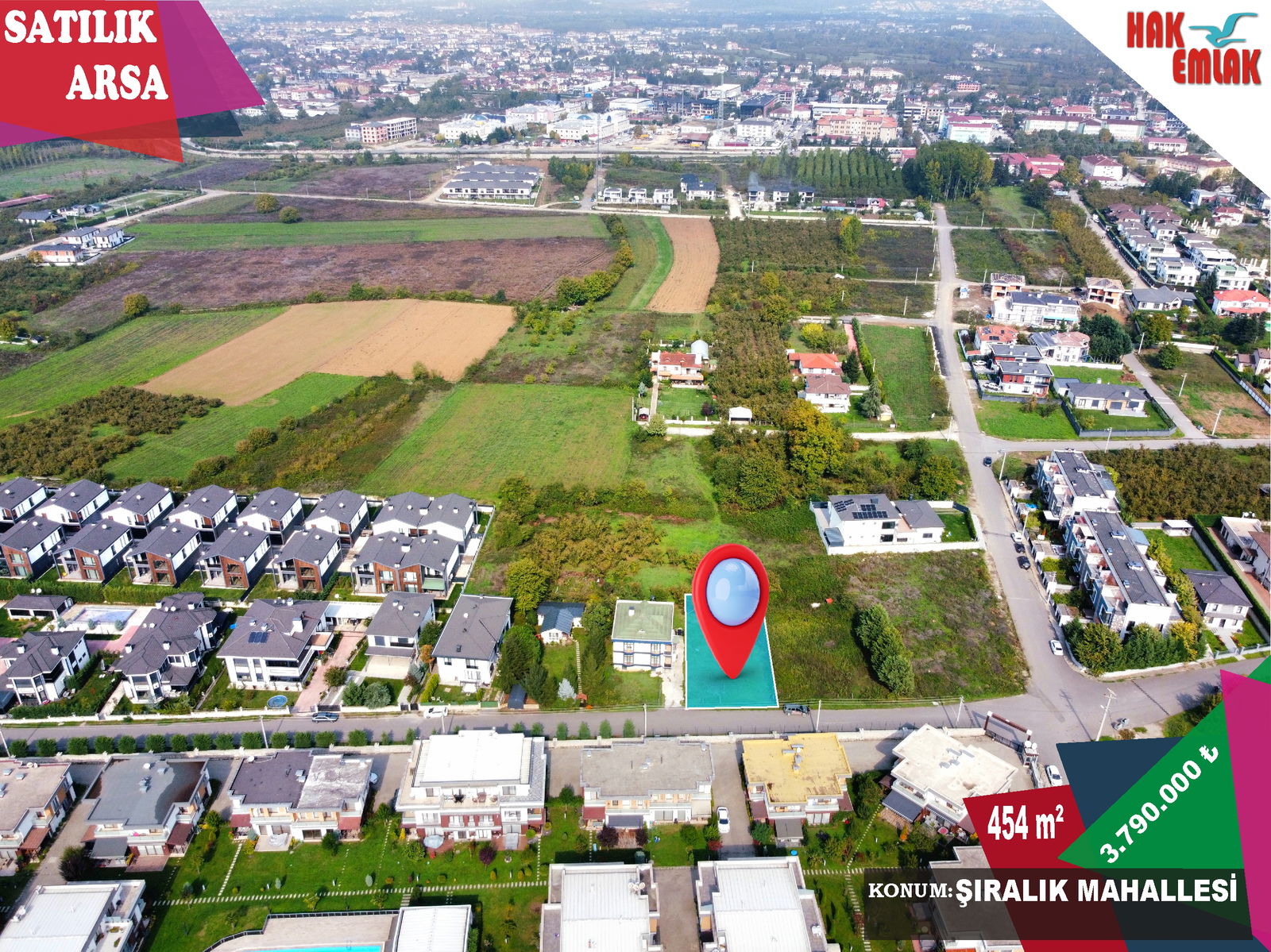Hak Emlaktan Şıralık Mah Villa Yapımına Uygun Satılık 454m² Arsa