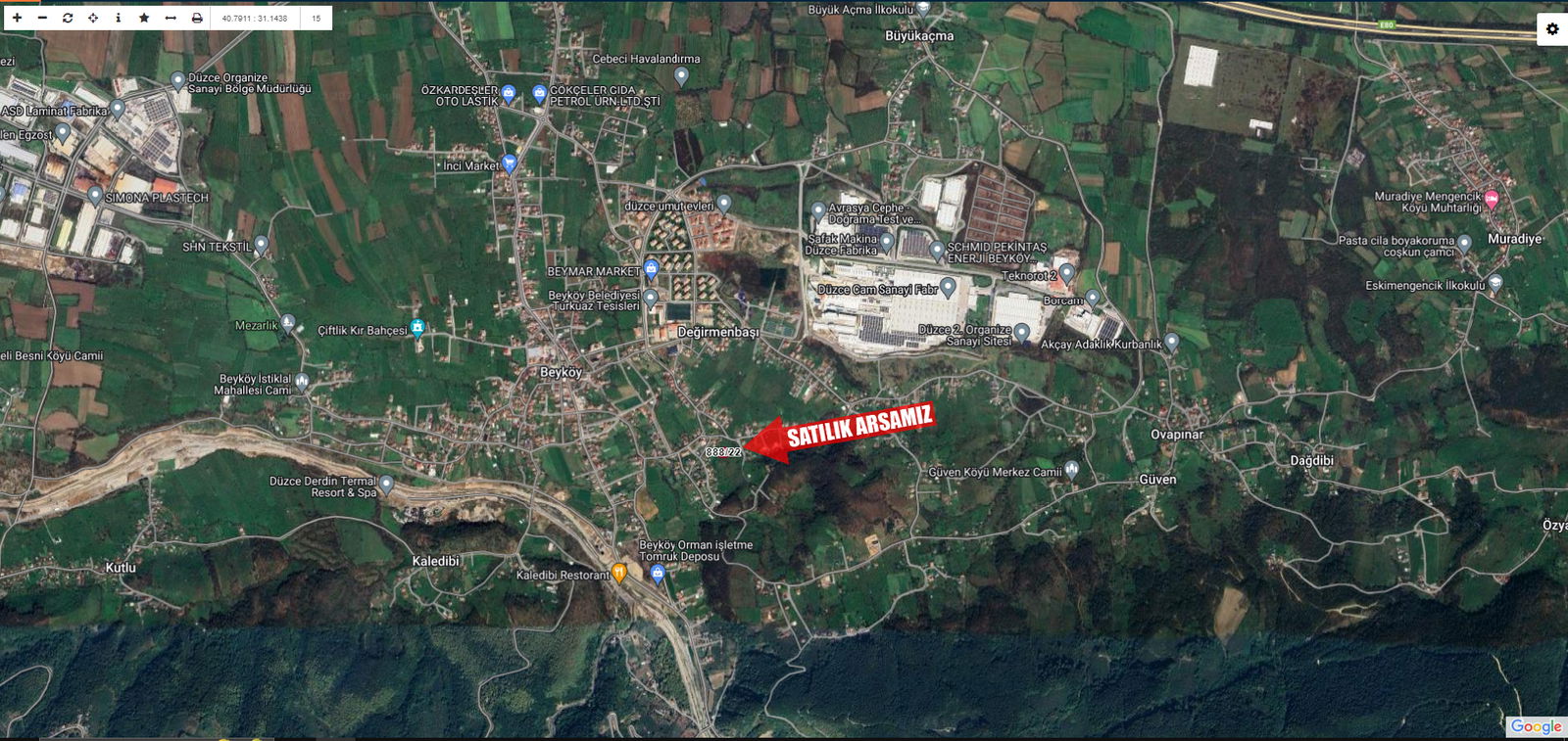 ARSAMIZ DÜZCE / MERKEZ / BEYKÖY BELDESİ DEĞİRMENBAŞI MH.DE YER ALMAKTADIR