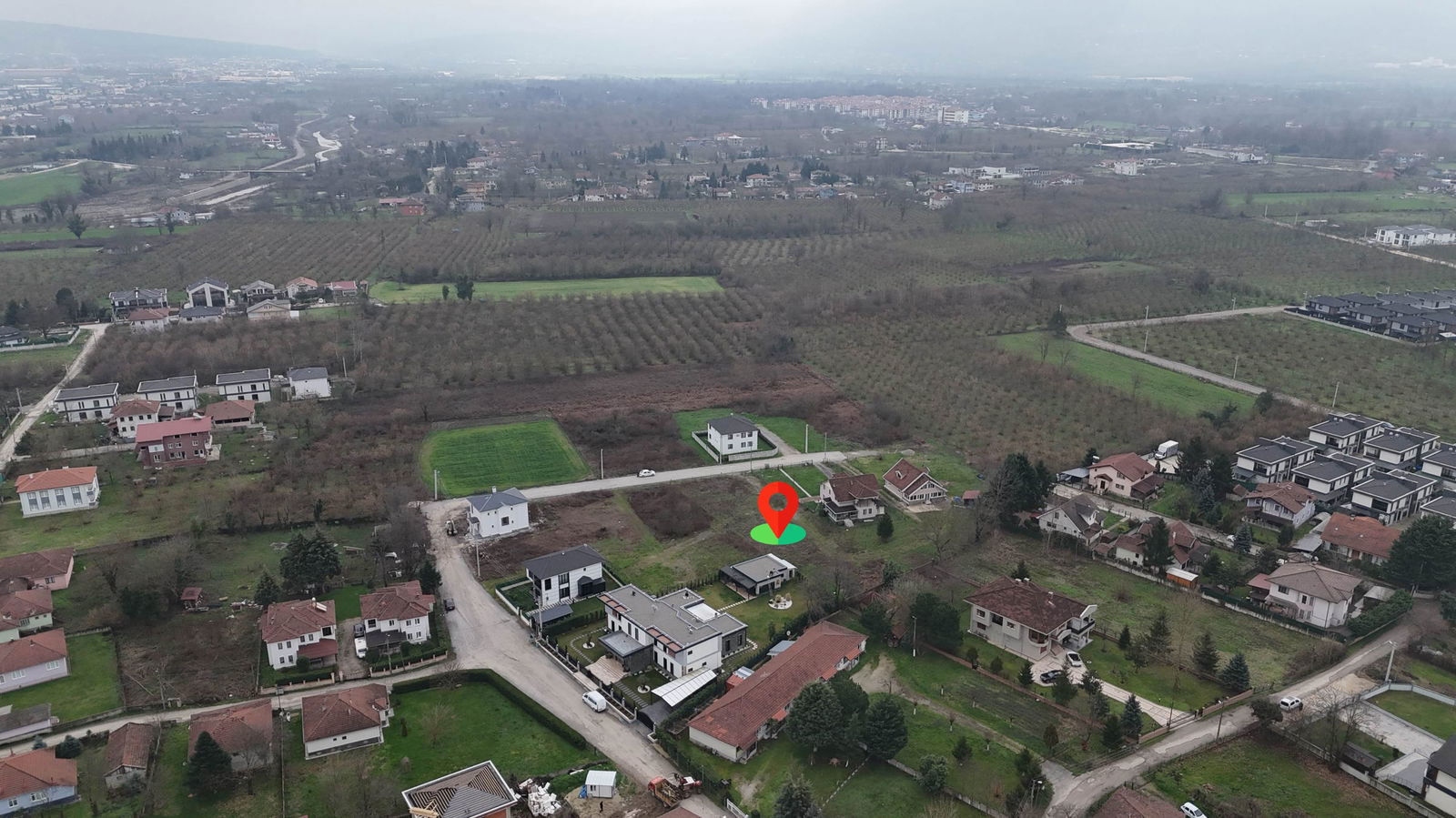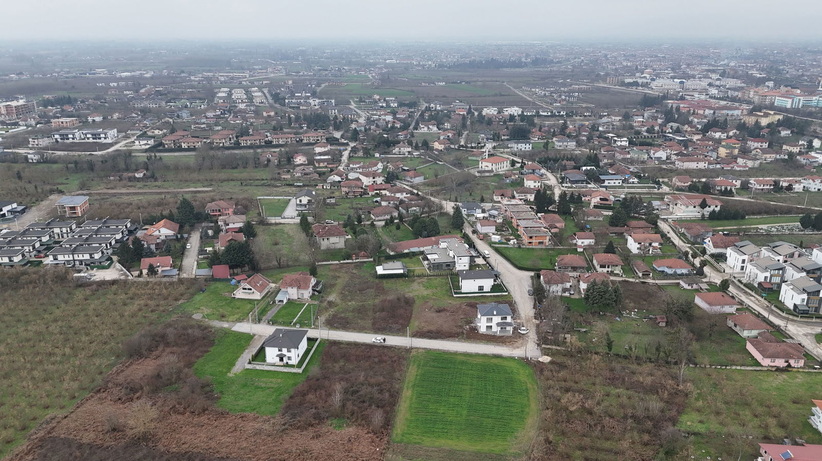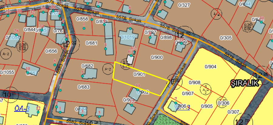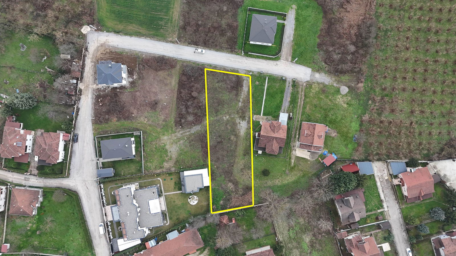 Villa yapımına müsait, parselasyonu yapılmış arsa.
