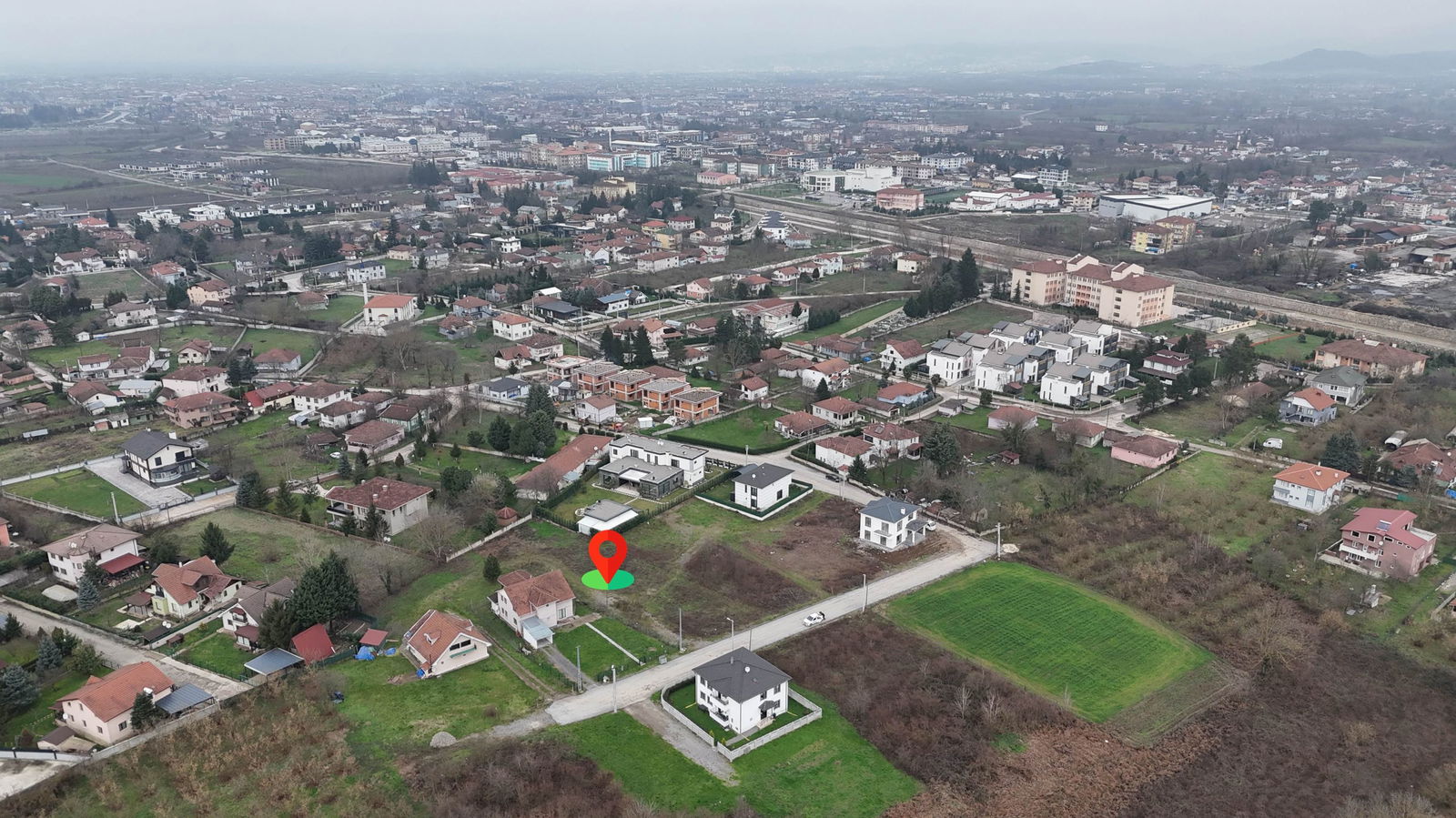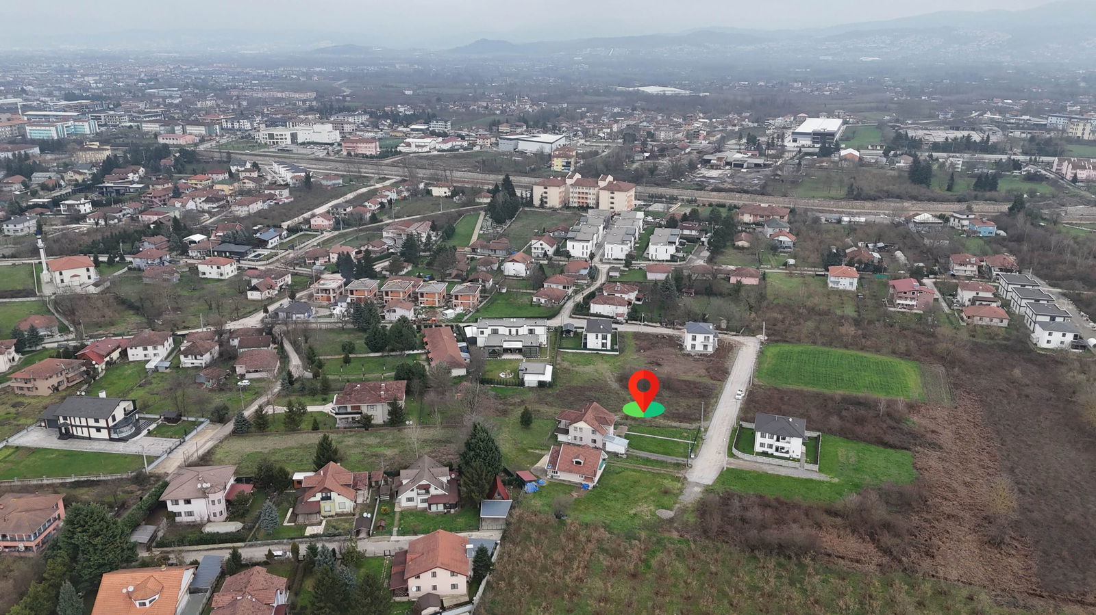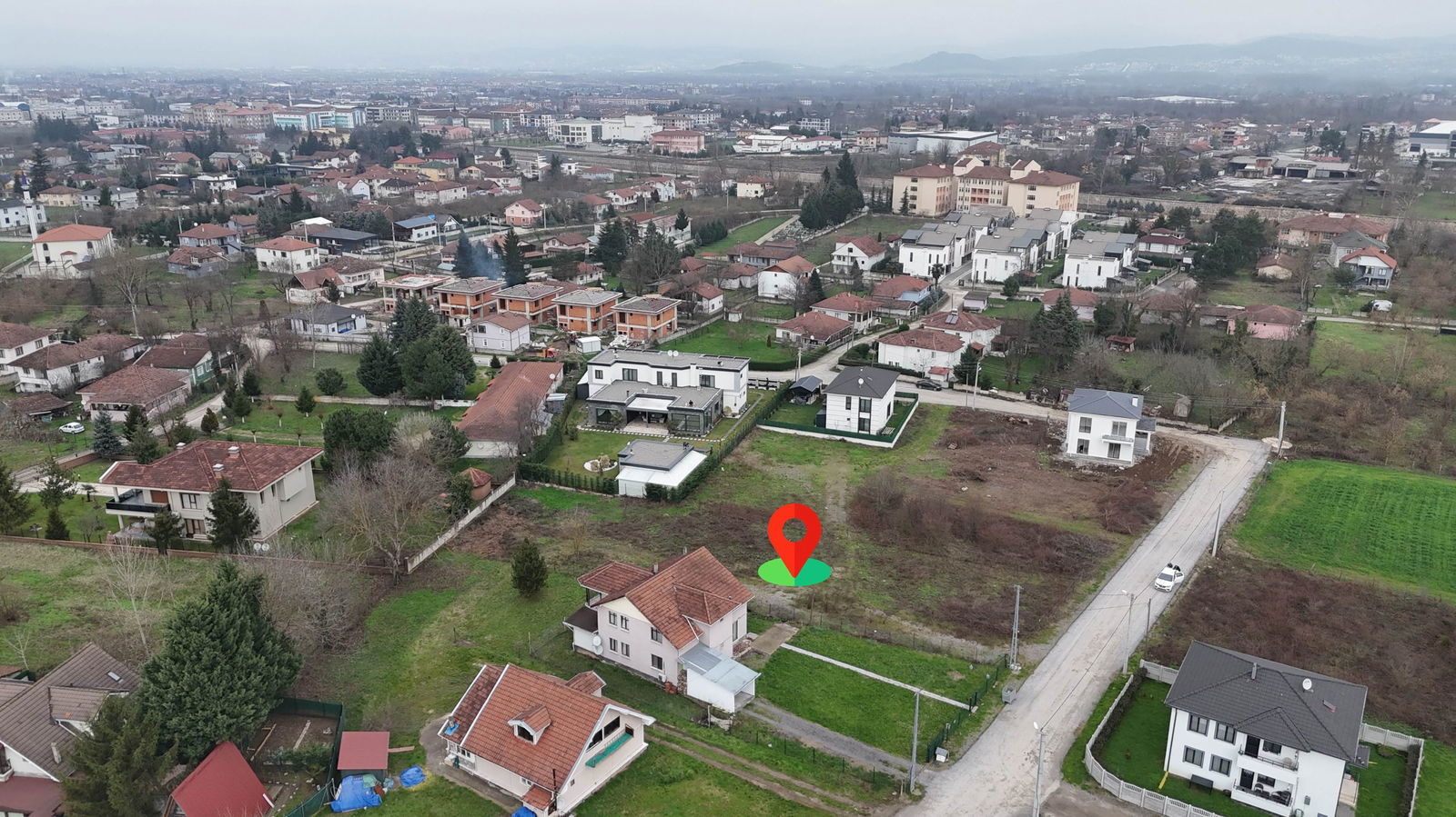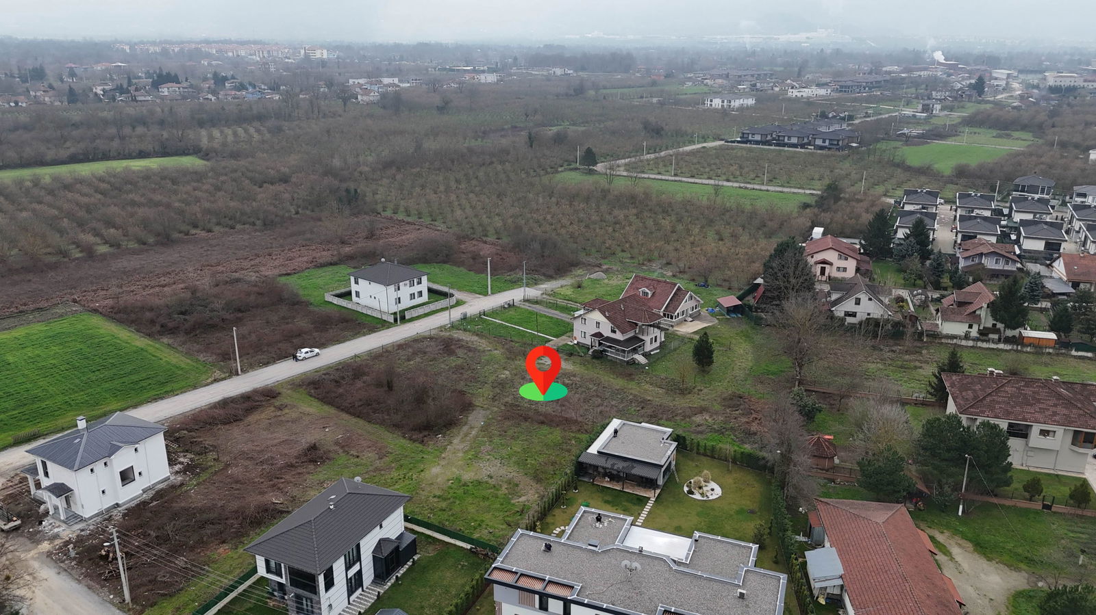 Villa yapımına müsait, parselasyonu yapılmış arsa.