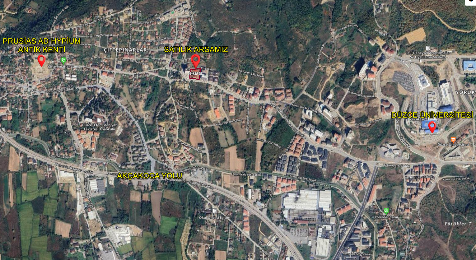 Düzce’nin gelişen bölgelerinden Konuralp'te yatırım değeri yüksek üniversite yerleşkesine çok yakın konumda bulunan